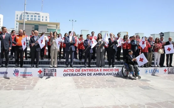La Gobernadora Libia Dennise García Muñoz Ledo dio inicio a la Colecta Anual 2026 de la Cruz Roja en Guanajuato, entregando ambulancias, equipos y apoyo operativo con recursos de Tocando Corazones y la ciudadanía.