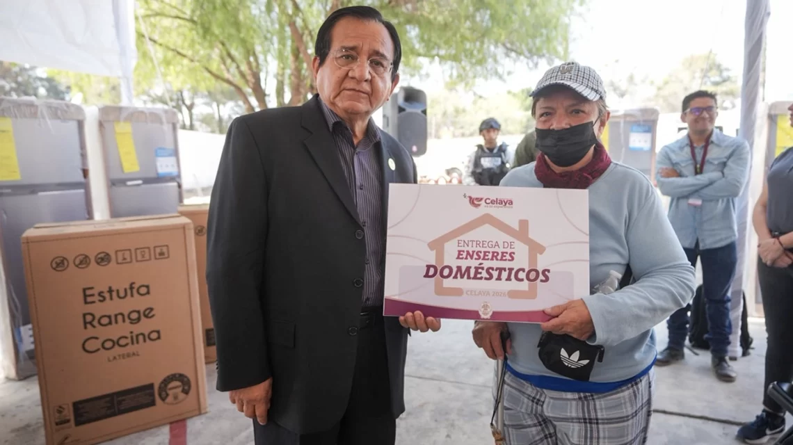 Celaya, Gto., a 12 de febrero del 2026.- El Gobierno Municipal, encabezado por el presidente Juan Miguel Ramírez, entregó este lunes enseres domésticos a familias de la colonia Cuauhtémoc que resultaron afectadas por las lluvias del año pasado, las cuales provocaron el desbordamiento del canal Labradores.