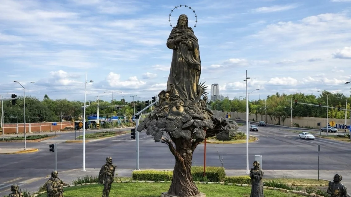 En el centro del conjunto escultórico se ubica la figura de la Virgen de la Purísima Concepción, considerada patrona de la ciudad. Esta advocación mariana fue introducida por los frailes franciscanos desde España alrededor de 1577 y ha permanecido como un referente de devoción religiosa y protección espiritual durante más de 450 años.