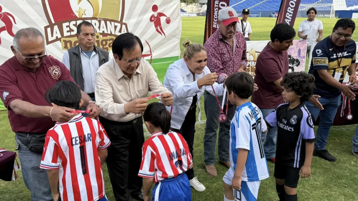 Celaya, Gto., a 20 de octubre del 2025.- El estadio Miguel Alemán Valdés (MAV) fue nuevamente el escenario de las finales de fútbol de la micro región La Luz, dentro del programa “La Esperanza Nos Liga”, en las categorías Sub-10 y Sub-13.