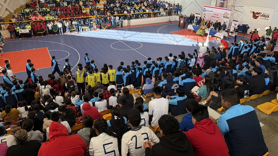 La inauguración del evento se realizó en el gimnasio de básquetbol de la Deportiva Miguel Alemán Valdés, espacio que reunió a estudiantes, docentes, supervisores escolares y padres de familia. Al acto protocolario asistió la directora del Sistema de Cultura Física y Deporte de Celaya (SIDEC), Alma Gorety Martínez García, quien dio la bienvenida a las delegaciones participantes.