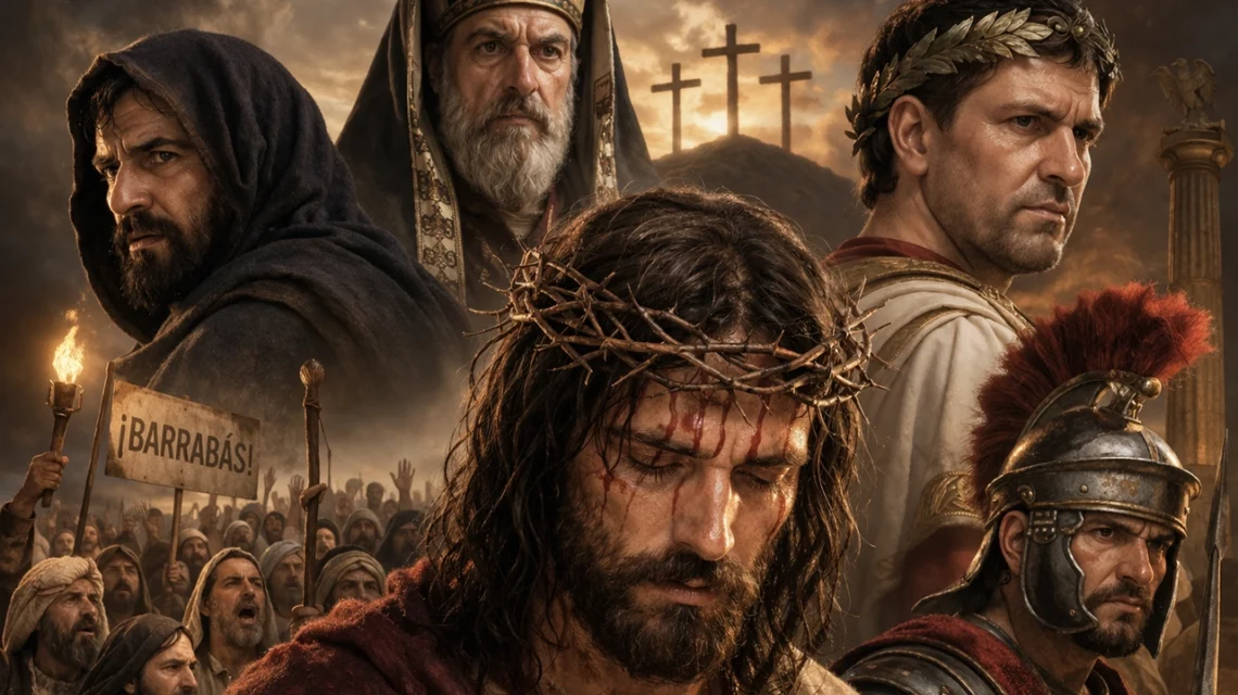 Barrabás es liberado en lugar de Jesús como parte de una tradición de la época. Este hecho resalta el contraste entre un acusado de rebelión y quien es identificado como figura espiritual, reforzando el simbolismo de la pasión de Cristo.