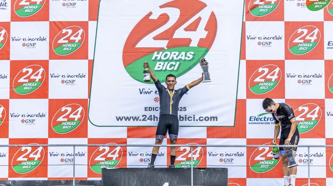 Celaya, Gto., a 17 de julio del 2025.- El ciclista originario de la comunidad de San Juan de la Vega, Pedro Esteban Cuarenta Corona, conquistó por cuarta ocasión consecutiva el evento de ultra resistencia “24 Horas en Bici”, celebrado en el Autódromo Hermanos Rodríguez, en la Ciudad de México.