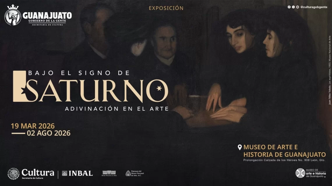 León, Gto., a 17 de marzo del 2026.- La Secretaría de Cultura del Gobierno de México, a través del Instituto Nacional de Bellas Artes y Literatura (INBAL), en colaboración con la Secretaría de Cultura de Guanajuato y el Museo de Arte e Historia de Guanajuato, presenta la exposición “Bajo el signo de Saturno. Adivinación en el arte”, que abrirá sus puertas el 19 de marzo de 2026. Esta muestra forma parte del programa de itinerancias del Museo Nacional de Arte (MUNAL), cuyo objetivo es fomentar la circulación del patrimonio artístico y la descentralización cultural en el país.