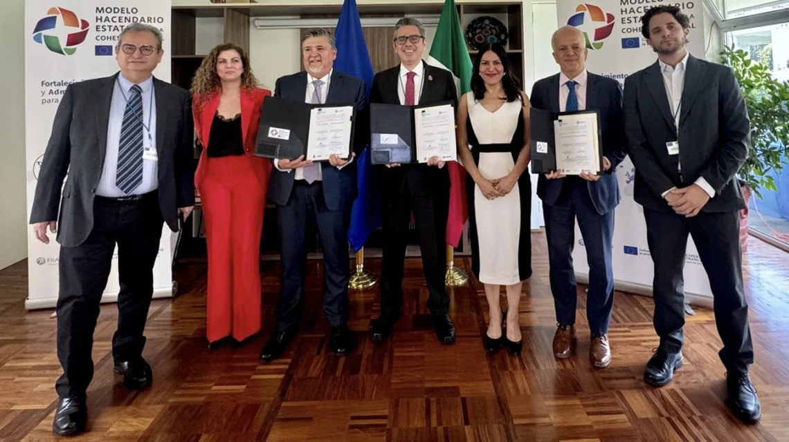 La firma del convenio se realizó el pasado 16 de abril en la Embajada de la Delegación Europea en México, con la participación del secretario de Hacienda Pública de Jalisco, Luis García Sotelo, y el secretario de Finanzas de Guanajuato, Héctor Salgado Banda. Como testigos de honor estuvieron representantes de la Unión Europea y de la Unidad de Coordinación con Entidades Federativas.