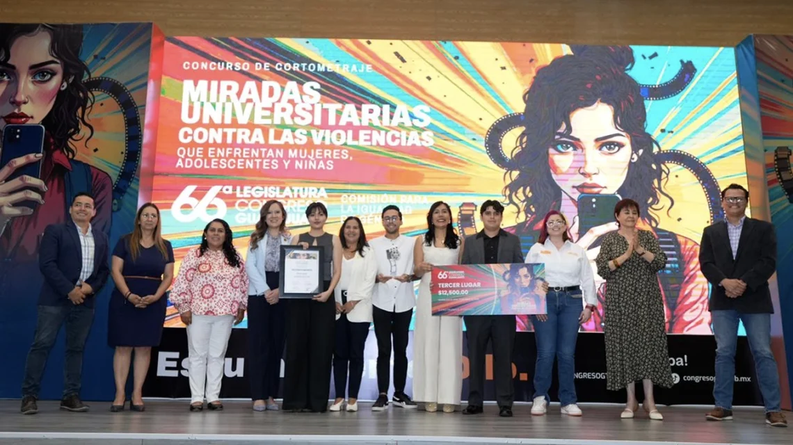 Guanajuato, Gto., a 17 de abril del 2026.- La Comisión para la Igualdad de Género llevó a cabo la premiación del concurso de cortometrajes Miradas Universitarias contra las violencias que enfrentan mujeres, adolescentes y niñas, una iniciativa enfocada en visibilizar la violencia de género desde la perspectiva juvenil.