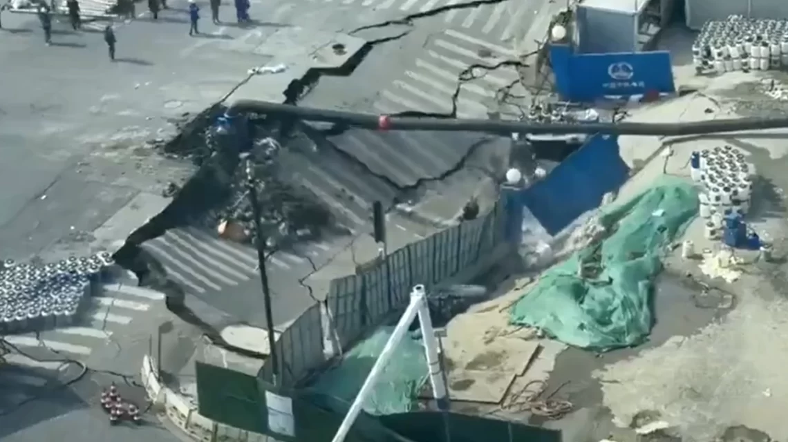Shangai, CH., a 12 de febrero del 2026.- Un enorme socavón se abrió de manera repentina el 11 de febrero de 2026 en la concurrida intersección de Qixin Road y Li’an Road, en el distrito de Minhang, Shanghai. El colapso se produjo en un área cercana a los trabajos de construcción de la nueva línea de metro Jiamin, generando un cráter de varios metros que obligó a cerrar la vía y a suspender temporalmente el tránsito.