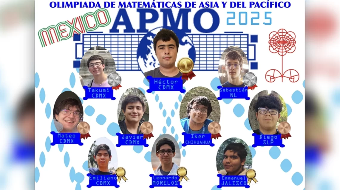 Ciudad de México, a 02 de agosto del 2025.- México brilló una vez más en el ámbito académico internacional al obtener 10 reconocimientos en la Olimpiada de Matemáticas de Asia y el Pacífico (APMO) 2025, una de las competencias más exigentes en su tipo. El equipo nacional logró una medalla de oro, dos de plata, cuatro de bronce y tres menciones honoríficas, consolidando su posición como una potencia matemática entre los países participantes.