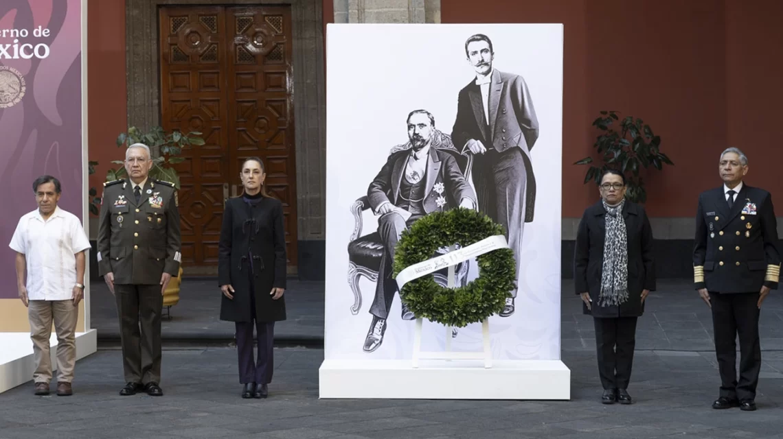 Ciudad de México, a 23 de febrero del 2026.- La Presidenta de México, Claudia Sheinbaum Pardo, encabezó la ceremonia por el 113 aniversario luctuoso del presidente Francisco I. Madero y del vicepresidente José María Pino Suárez, realizada en el Patio de Honor de Palacio Nacional.