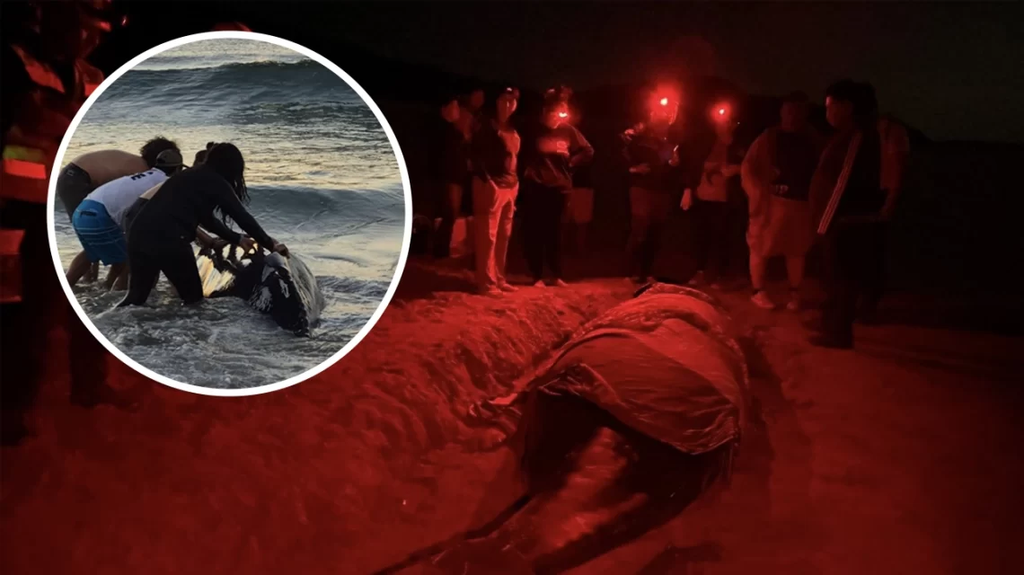 Santuario Barra de la Cruz-Playa Grande, Oax., a 11 de febrero del 2026.- La Comisión Nacional de Áreas Naturales Protegidas (Conanp), mediante el personal del Santuario Barra de la Cruz-Playa Grande, atendió el varamiento de un ballenato de ballena jorobada (Megaptera novaeangliae) la noche del viernes y la mañana del sábado pasado en la playa de esta Área Natural Protegida (ANP).