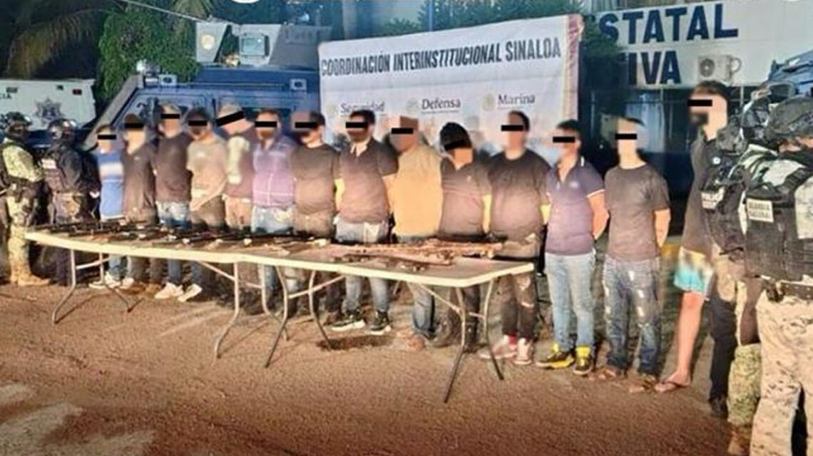En un segundo hecho, elementos de seguridad atendieron una denuncia ciudadana realizada al 089, la cual alertaba sobre la presencia de personas armadas en un hotel del municipio de Navolato. Al arribar al sitio, los agentes detuvieron a 14 personas, entre ellas tres extranjeras, y aseguraron 13 armas largas y una ametralladora.