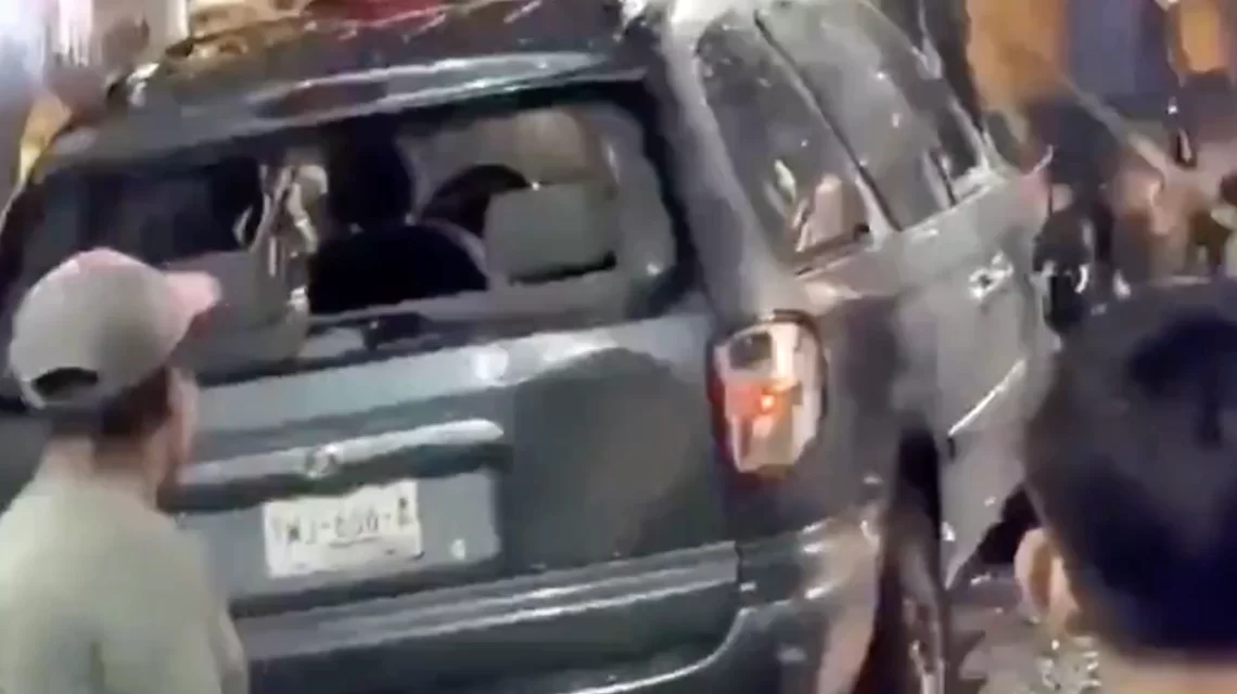 La frustración derivó en actos violentos. Un grupo de personas arremetió contra una camioneta presuntamente relacionada con los organizadores del evento, causando severos daños: rompieron vidrios, espejos y parte de la carrocería.