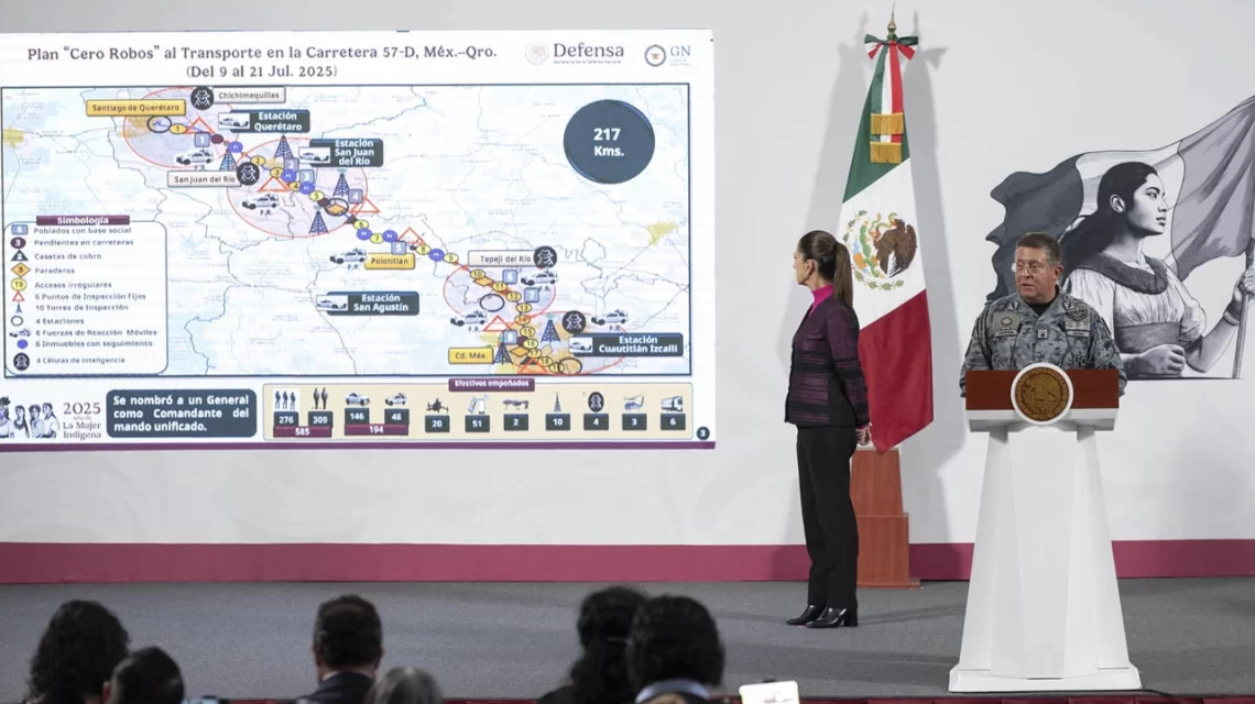 Ciudad de México, a 22 de julio del 2025.- El Gobierno de México implementó la estrategia especial Cero Robos en las carreteras México-Puebla, México-Querétaro y Culiacán-Mazatlán, con el objetivo de reforzar la seguridad en estos tramos de alta incidencia delictiva. Esta acción es encabezada por la Guardia Nacional (GN) en coordinación con la Secretaría de Infraestructura, Comunicaciones y Transportes (SICT), y contempla su expansión a toda la red federal del país.