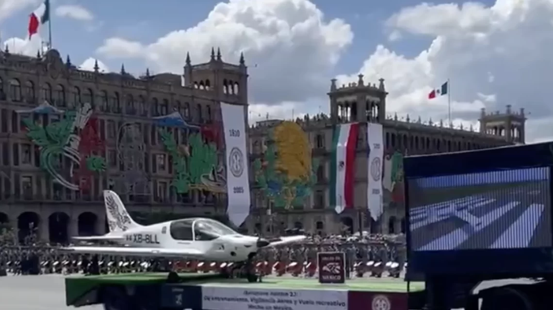 Ciudad de México, a 16 de septiembre del 2025.- Durante el Desfile Militar conmemorativo del 16 de septiembre, una aeronave ligera biplaza captó la atención del público al sobrevolar el Zócalo capitalino con una insignia clara: Hecho en México. Se trata del Halcón 2.1, diseñado y fabricado por la empresa mexicana Horizontec, con sede en Celaya, Guanajuato.