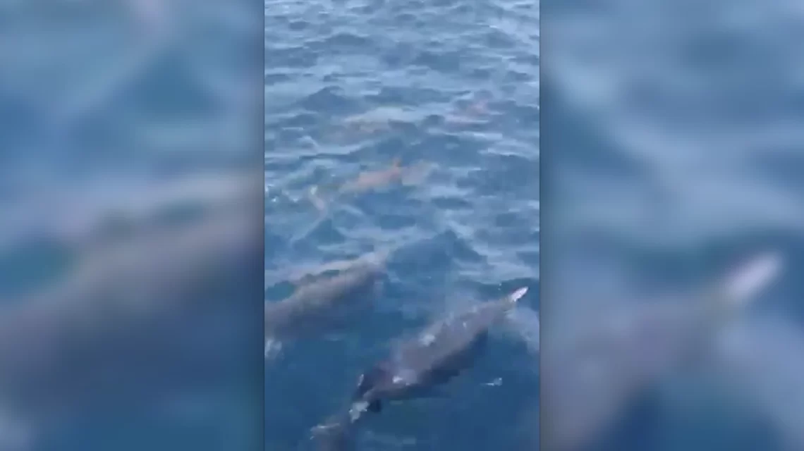 Puerto Escondido, Oax., a 10 de marzo del 2026.- Un grupo numeroso de delfines fue avistado este martes nadando muy cerca de la orilla de Playa Zicatela, sorprendiendo a locales y turistas. El fenómeno fue captado en videos que rápidamente se compartieron en redes sociales, mostrando a los mamíferos marinos desplazándose de manera coordinada frente al litoral.
