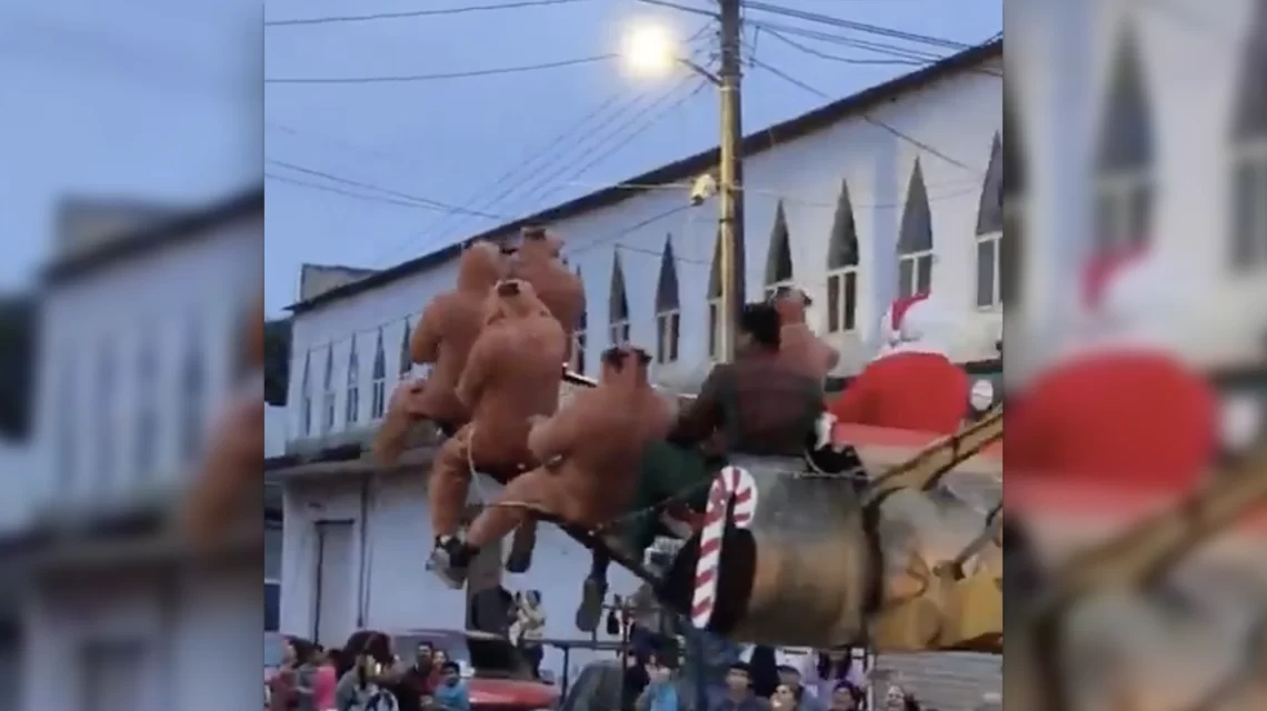 El Naranjo, SLP., a 09 de diciembre del 2025.- El municipio de El Naranjo, en San Luis Potosí, sorprendió a propios y visitantes con un creativo trineo navideño construido a partir de maquinaria pesada. La iniciativa, impulsada por el departamento de Obras Públicas, combinó un tractor y una retroexcavadora decorados con luces y adornos festivos, simulando el clásico trineo de Santa Claus acompañado por “renos” disfrazados.