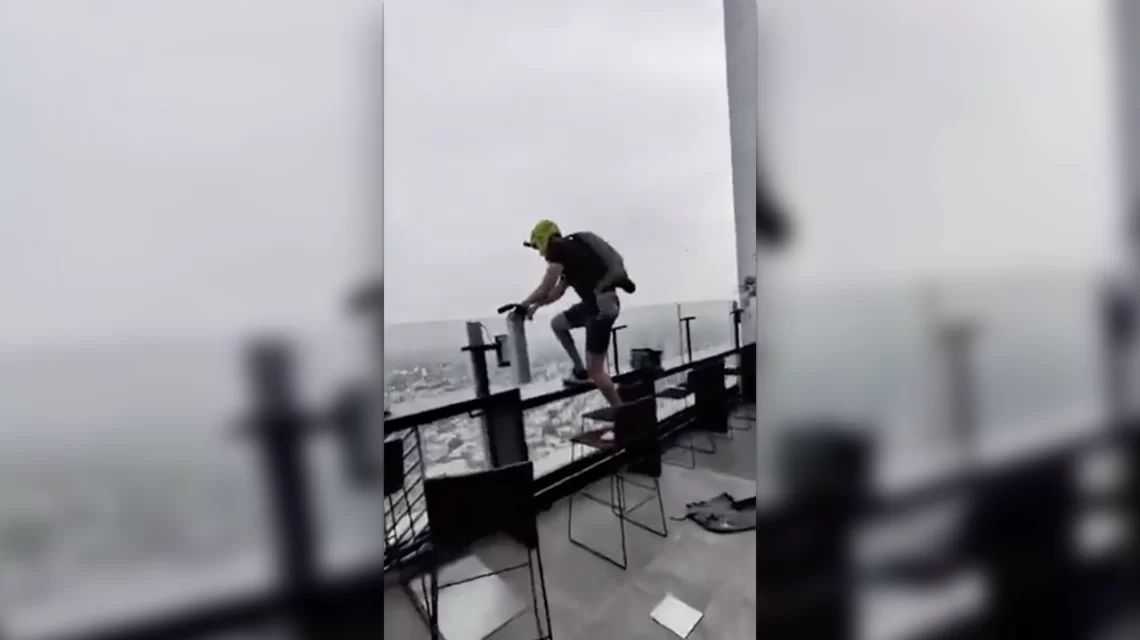 El incidente ocurrió el pasado 10 de febrero de 2026, desde la terraza conocida como Rooftop Bar 360, ubicada entre los pisos 41 y 42 del rascacielos. En las imágenes, se observa al joven equipado con casco y paracaídas, ignorando las advertencias de testigos y empleados que intentaron impedir la acción.