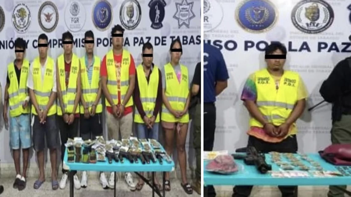 Ciudad de México, a 18 de noviembre del 2025.- En Tabasco, autoridades federales y locales detuvieron a ocho personas durante dos operativos realizados en los municipios de Macuspana y Jalpa de Méndez, asegurando armas de fuego y diversas drogas.