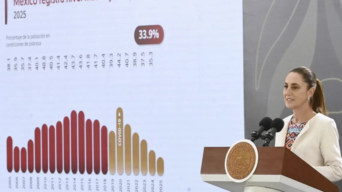 México alcanzó en 2025 el nivel más bajo de pobreza laboral en dos décadas, con 33.9%, informó la presidenta Claudia Sheinbaum con base en datos del INEGI.