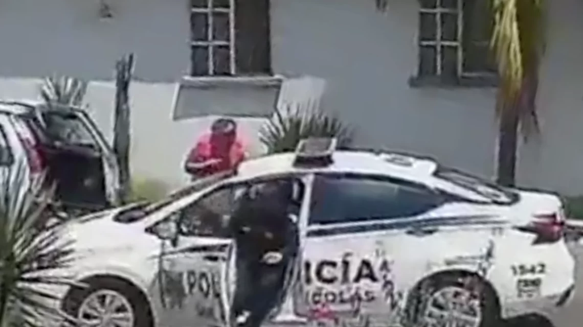 Cámaras de videovigilancia captaron el momento en el que la afectada pidió ayuda desesperadamente a otros automovilistas, sin obtener respuesta. Fue entonces cuando el oficial Rubén Rocha, a bordo de la unidad 1542 de la policía municipal, se percató de la emergencia y actuó de inmediato.