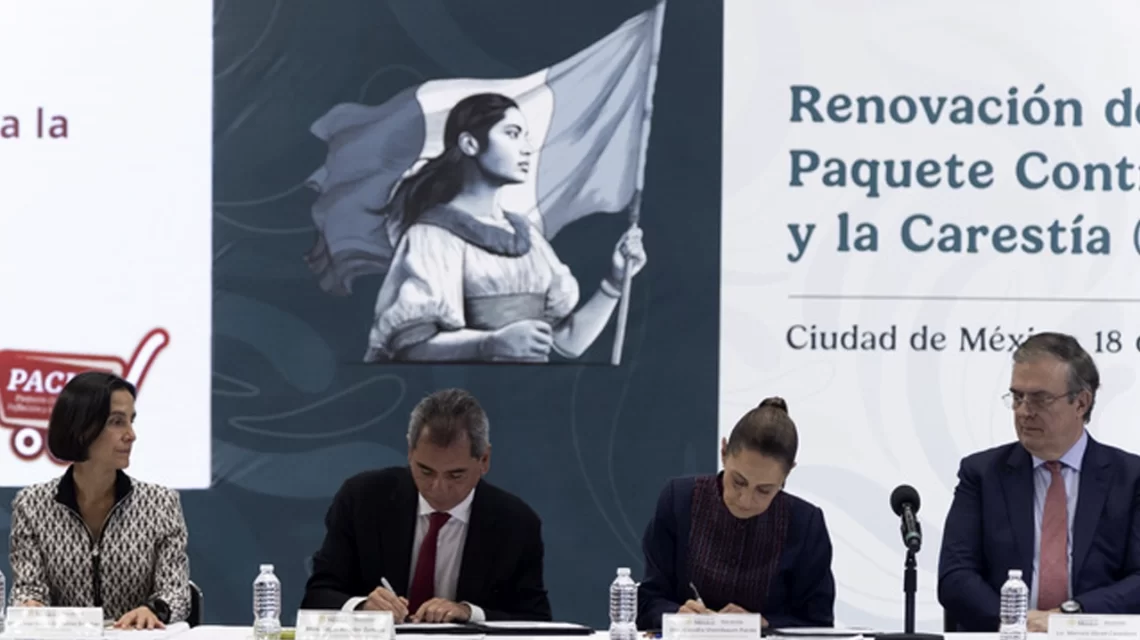 Ciudad de México a 18 de noviembre del 2025.- La Presidenta de México, Claudia Sheinbaum Pardo, encabezó la firma de la renovación del Paquete Contra la Inflación y la Carestía (Pacic) junto con representantes de tiendas de autoservicio y agroindustrias. Con este acuerdo, se mantiene en 910 pesos el costo de los 24 productos de la canasta básica, una medida que busca proteger la economía popular al evitar incrementos en su precio.