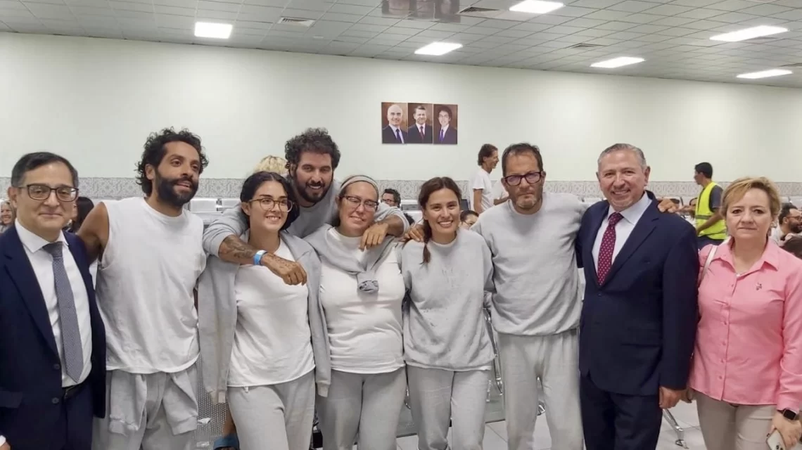De acuerdo con la Cancillería, Sol González Eguía, Ernesto Ledesma Arronte, Arlín Medrano Guzmán, Carlos Pérez Osorio, Diego Vázquez Galindo y Laura Alejandra Veléz Ruiz Gaitán fueron trasladados hacia Amán, Jordania, donde fueron recibidos por el embajador de México. Desde allí continuarán su viaje de regreso al país, acompañados por personal diplomático mexicano.