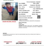 - Einar Kelem Lanuza: niño de 3 años, complexión delgada, cabello castaño lacio, vestía sudadera azul con manchas moradas, chaleco azul rey, pants rojo y sandalias azules.