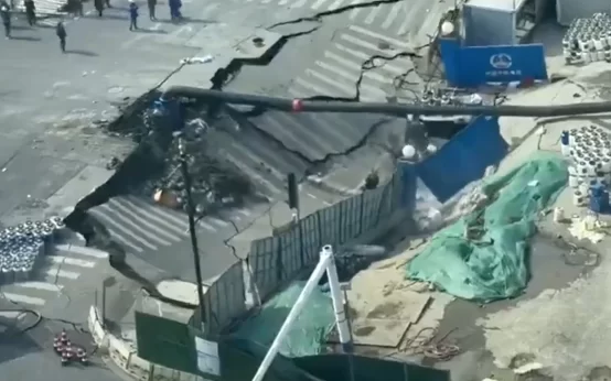 Un gigantesco socavón abrió un cráter en Shanghai junto a obras del metro Jiamin, obligando al cierre de la vía. No se reportaron heridos y las autoridades realizan inspecciones.