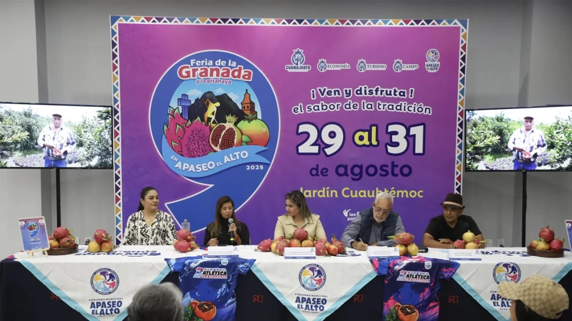 Apaseo El Alto, Gto., a 13 de agosto del 2025.- El municipio se prepara para la realización de la 9ª Feria de la Granada y la Pitahaya, un evento que espera atraer a más de 16 mil visitantes y que busca impulsar la economía local, fortalecer la identidad cultural y posicionar la riqueza agrícola de la región a nivel nacional e internacional. Esta feria cuenta con el respaldo de la Secretaría de Turismo e Identidad del Gobierno del Estado de Guanajuato.