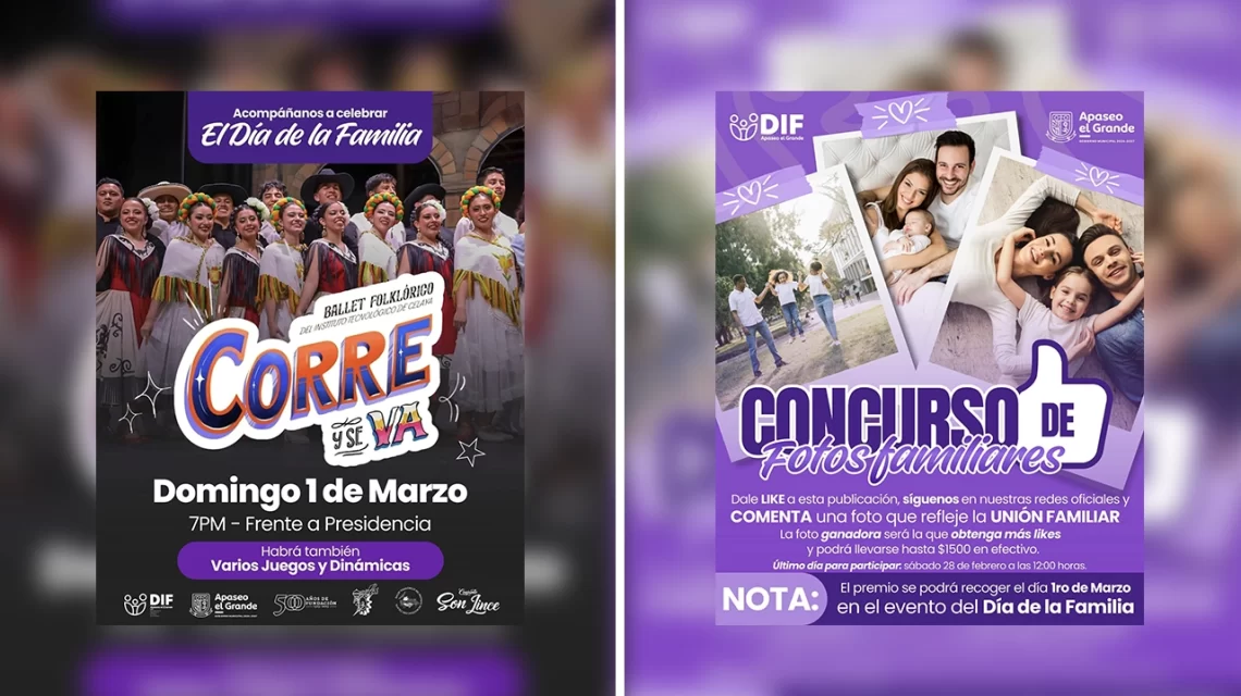 Apaseo El Grande, Gto., a 26 de febrero del 2026.- El DIF Municipal de Apaseo el Grande anunció una serie de actividades para conmemorar el Día de la Familia, que incluyen una dinámica en redes sociales con premio en efectivo y un evento artístico y cultural abierto al público.