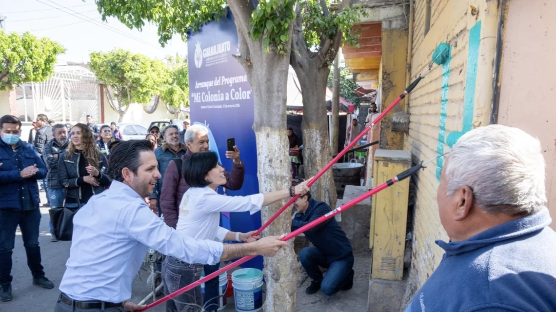 Apaseo El Grande, Gto., a 12 de enero del 2026.- Con una inversión total de 2 millones de pesos, se puso en marcha en Jocoqui el programa de rehabilitación urbana “Mi colonia a color”, una iniciativa conjunta del Gobierno del Estado, el Municipio y la Asociación Comex por un México Mejor, destinada a mejorar la imagen urbana mediante la pintura de viviendas y espacios comunitarios.