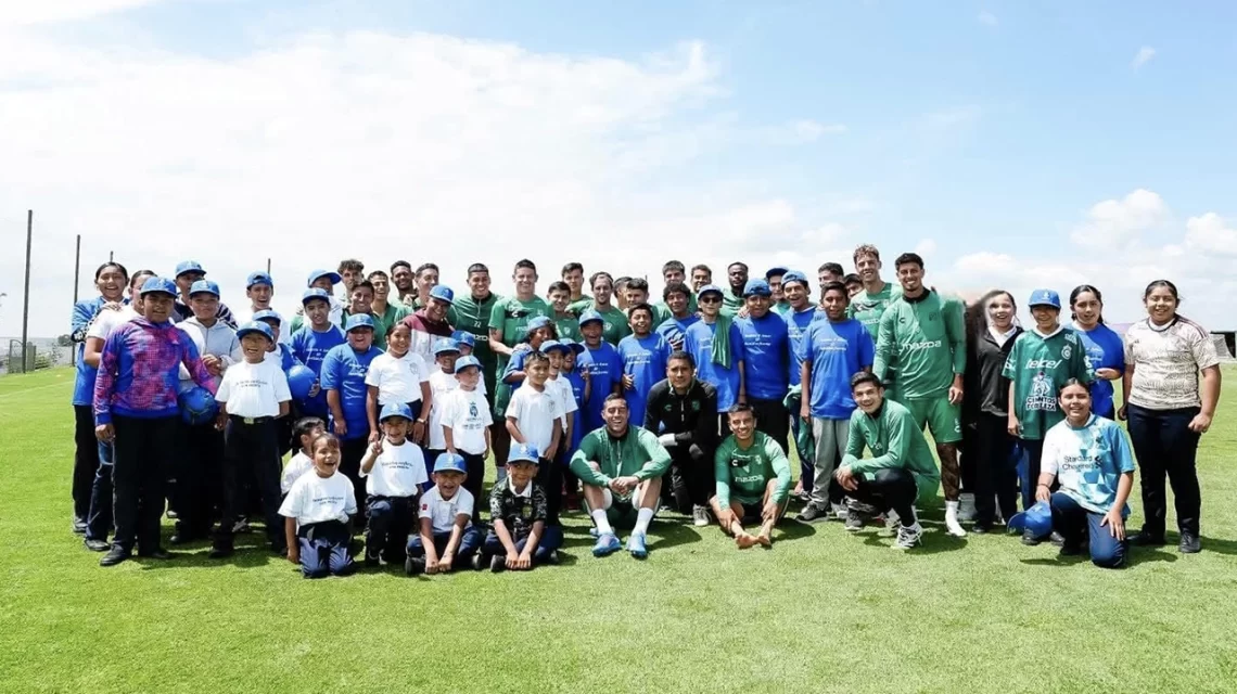 Apaseo El Grande, Gto., a 28 de agosto del 2025.- Más de 20 niñas y niños que forman parte de la “Academia Policial Infantil” de Apaseo El Alto tuvieron la oportunidad de convivir con jugadores del Club León en una actividad organizada por la Secretaría de Seguridad y Paz. La experiencia se llevó a cabo en el Complejo Integral de Seguridad Pública, desde donde los pequeños fueron trasladados a las instalaciones deportivas para disfrutar de la jornada.