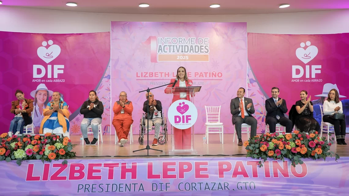Cortazar, Gto., a 15 de diciembre del 2025.- El Sistema DIF Municipal de Cortazar, encabezado por su presidenta Lizbeth Lepe Patiño, presentó su Primer Informe de Actividades, destacando los logros en beneficio de las familias cortazarenses.