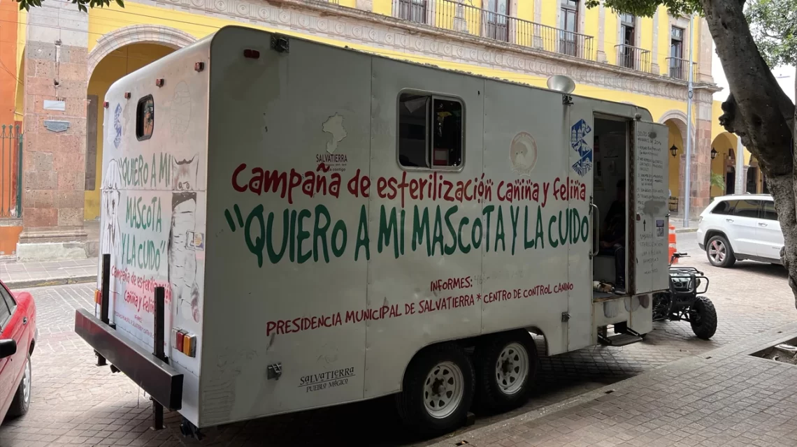 Salvatierra, Gto., a 18 de agosto del 2025.- La Dirección de Salud Municipal de Salvatierra puso en marcha la campaña de esterilización canina y felina, ofreciendo cirugías a bajo costo para mascotas en el quirófano móvil instalado frente a la Presidencia Municipal. La iniciativa busca prevenir la sobrepoblación animal y garantizar el bienestar de los animales de compañía.