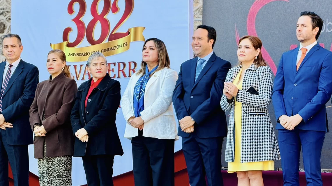 Salvatierra, Gto., a 09 de febrero del 2026.- La Ciudad de Salvatierra conmemoró su 382 aniversario de fundación con una ceremonia cívica y una sesión solemne, donde autoridades municipales, estatales y federales resaltaron la relevancia histórica del municipio como la primera ciudad fundada en Guanajuato.
