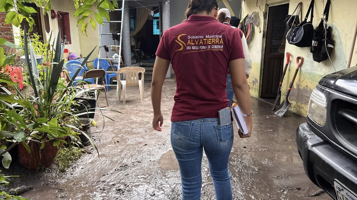 Salvatierra, Gto., a 29 de agosto del 2025.- El presidente municipal de Salvatierra, José Daniel Sámano Jiménez, junto con la presidenta del DIF municipal, María Teresa Cerda Rosas, encabezaron un recorrido por las comunidades de Urireo y Maravatío del Encinal para atender a las familias afectadas por las intensas lluvias registradas la noche anterior.