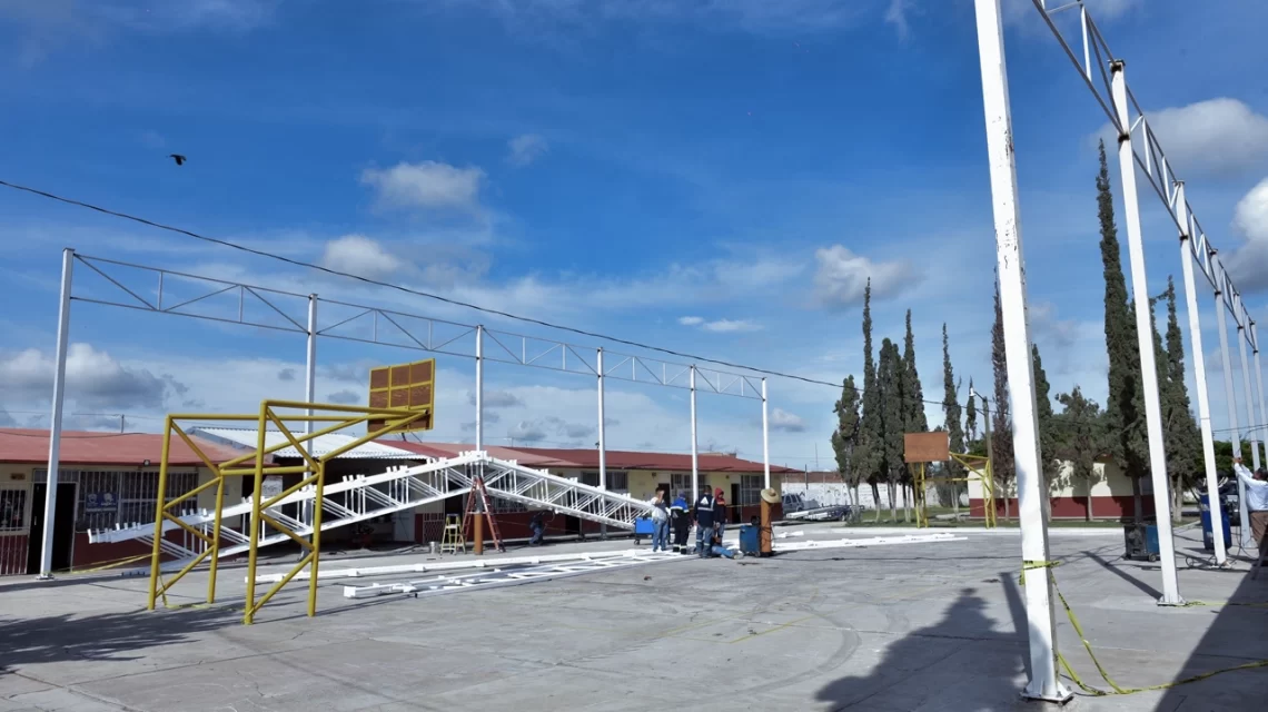 La estructura, que mide 20 por 30 metros, brindará protección a las niñas y niños contra los intensos rayos solares y las lluvias, dando respuesta a una de las principales solicitudes de madres y padres de familia. El proyecto forma parte del programa federal “La Escuela es Nuestra” y contempla una aportación de 200 mil pesos por parte de los propios padres, quienes desde hace un año habían impulsado esta iniciativa.