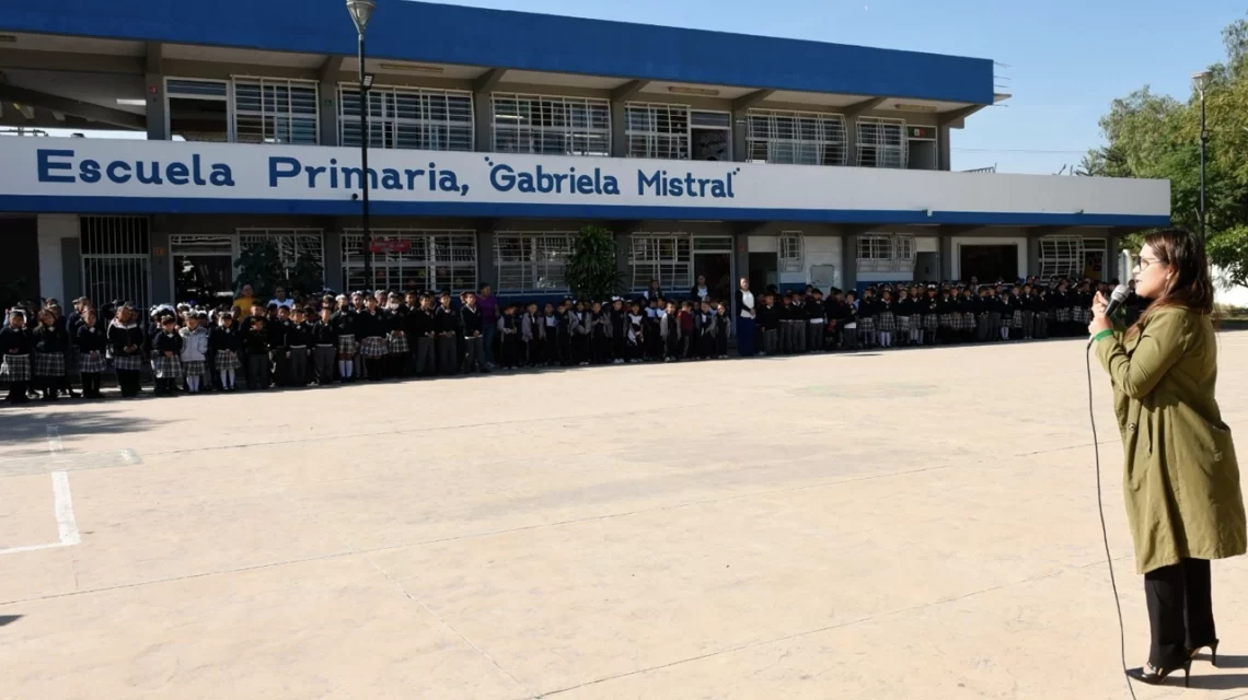 Villagrán, Gto., a 27 de octubre del 2025.- La presidenta municipal, Cinthia Teniente, encabezó este lunes los honores a la Bandera en la Escuela Primaria Gabriela Mistral, ubicada en la colonia Praderas de la Venta. Durante el evento participaron alumnas, alumnos, docentes, madres y padres de familia, así como directores de la administración municipal.