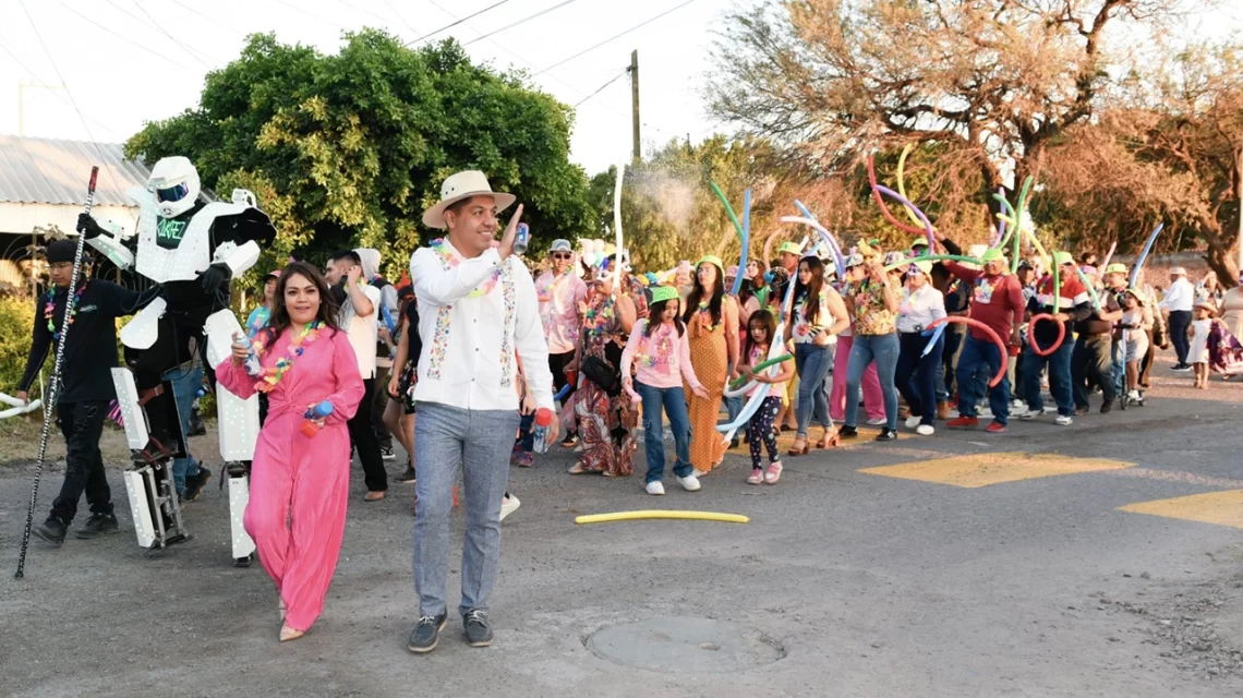 Villagrán, Gto., a 15 de febrero del 2026.- La comunidad de Suchitlán vivió un sábado lleno de color, música y tradición durante su festividad anual. El desfile reunió a la alcaldesa Cinthia Teniente Mendoza, el senador Emmanuel Reyes Carmona, integrantes del H. Ayuntamiento y personal de la Administración Municipal, quienes acompañaron a la comunidad en un recorrido cargado de alegría.
