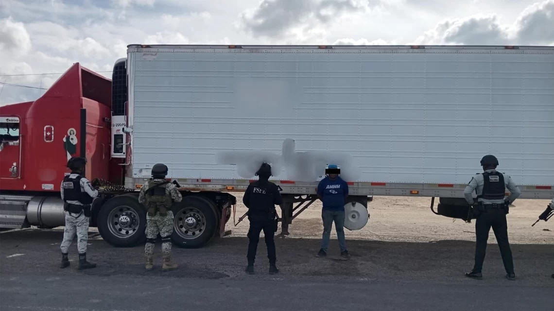El conductor, identificado como Lázaro Alberto “N”, de 23 años y originario de Chihuahua, no presentó placas, tarjeta de circulación ni documentos que acreditaran la propiedad de la caja refrigerada, la cual además carecía de número de identificación vehicular.