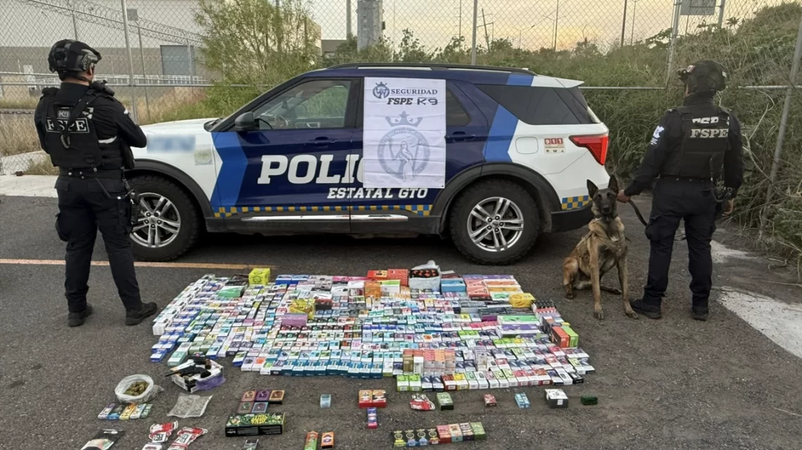 Un operativo en Salamanca permitió asegurar más de 347 mil pesos en vapeadores y marihuana, gracias a la detección de un binomio canino de la FSPE, en el marco de la estrategia CONFIA.