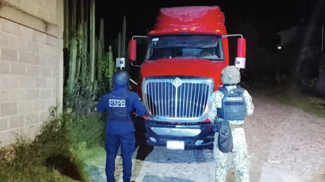 San José de Iturbide, Gto., a 08 de octubre del 2025.- En una acción conjunta, las Fuerzas de Seguridad Pública del Estado (FSPE) y la Secretaría de la Defensa Nacional (SEDENA) lograron el aseguramiento de un tractocamión con mercancía valuada en 800 mil pesos y la detención de dos personas presuntamente vinculadas con el robo de transporte de carga.