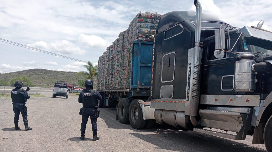 El aseguramiento tuvo lugar sobre la carretera Panamericana Apaseo el Alto–Querétaro, a la altura de la comunidad El Sabino, donde las autoridades localizaron un tractocamión color negro, con plataforma azul, cargada con 42 pacas de material PET, con un valor estimado de 67 mil 200 pesos.