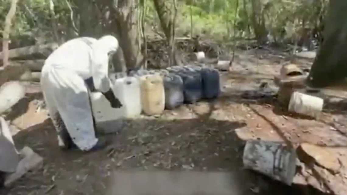 Navolato, Sin., a 18 de julio del 2025.- En el marco de las acciones para combatir el trasiego y producción de drogas sintéticas, elementos de la Secretaría de Marina (Semar), a través de la Armada de México, en coordinación con la Secretaría de la Defensa Nacional (Sedena), Fiscalía General de la República (FGR), Guardia Nacional (GN) y Secretaría de Seguridad y Protección Ciudadana (SSPC), localizaron y neutralizaron seis laboratorios clandestinos en el municipio de Navolato, Sinaloa.