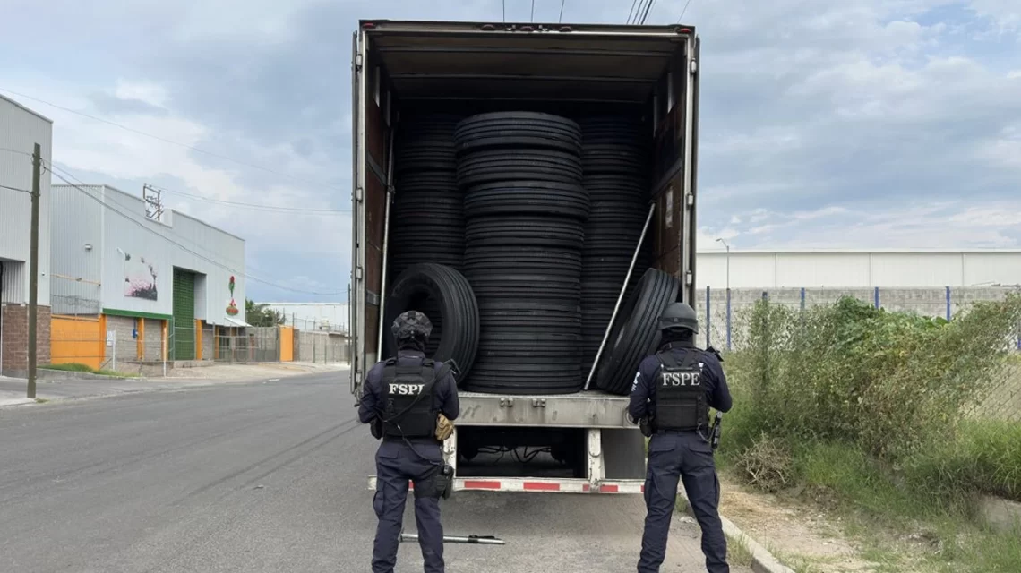 Celaya, Gto., a 07 de octubre del 2025.- La Secretaría de Seguridad y Paz del Estado de Guanajuato, en coordinación con autoridades federales, estatales y municipales, logró el aseguramiento de una caja seca previamente reportada como robada, cargada con 240 llantas Firestone, cuyo valor aproximado en el mercado es de 3.2 millones de pesos.
