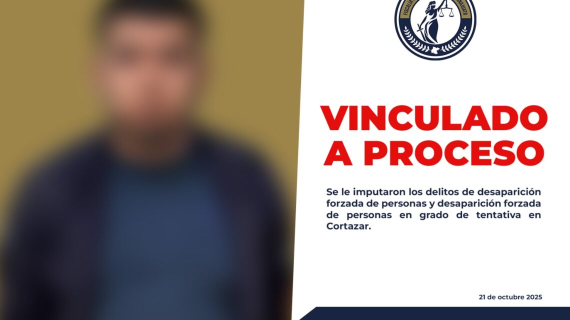 Cortazar, Gto., a 21 de octubre del 2025.- La Fiscalía General del Estado de Guanajuato (FGEG) informó la captura y vinculación a proceso penal de Daniel “N”, señalado como presunto responsable de la desaparición forzada de cinco personas ocurrida el pasado 7 de septiembre en el municipio de Cortazar.