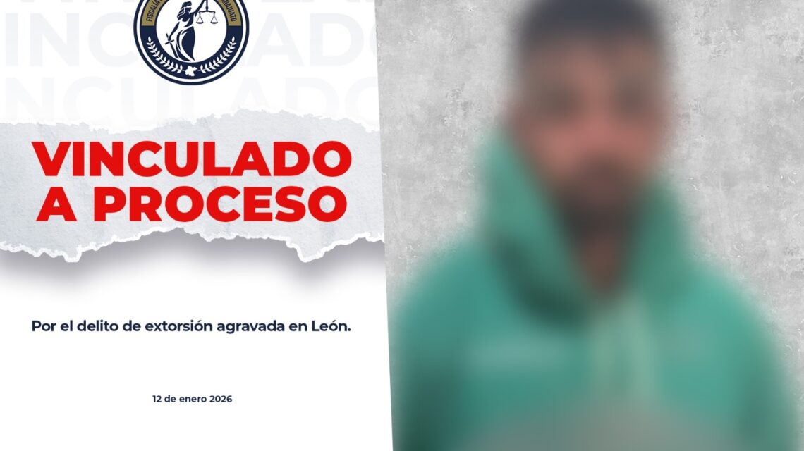 León, Gto., a 12 de enero del 2026.- La Fiscalía General del Estado de Guanajuato (FGEG) informó la detención y vinculación a proceso de Miguel Ángel “N”, señalado como presunto responsable del delito de extorsión agravada en el municipio de León.