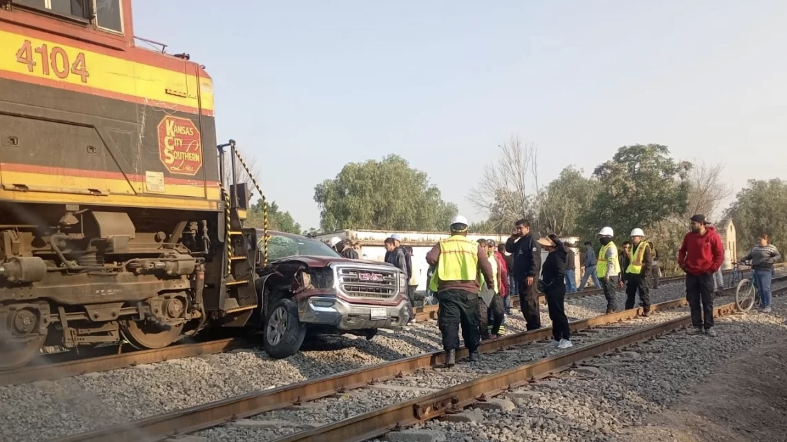 Camioneta es impactada por tren de carga en San Juan de la Vega