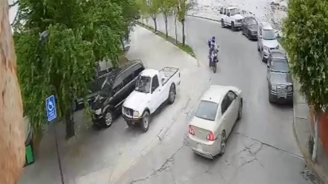 El incidente fue grabado por una cámara de seguridad y en las imágenes se observa el momento del impacto entre la motocicleta oficial y el vehículo, en una maniobra que refleja la imprudencia al conducir por parte de los involucrados.