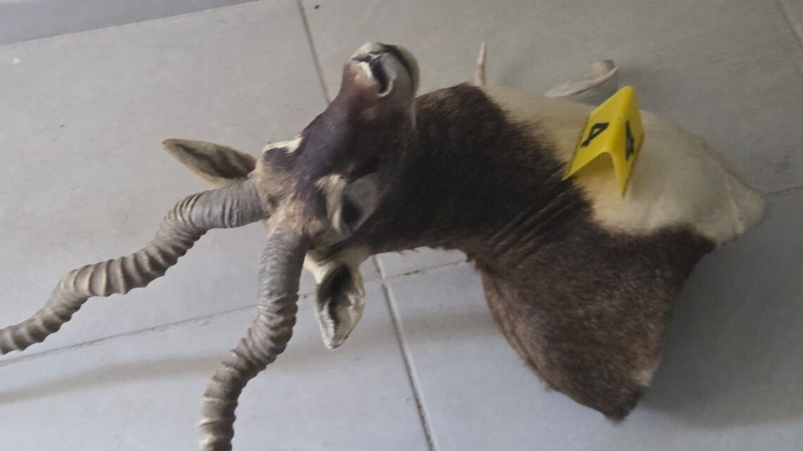 Entre los objetos asegurados también se encontraron numerario en diferentes denominaciones, dispositivos electrónicos (DVR, cámaras, una tableta, dos computadoras), binoculares y un busto disecado de animal con cuernos.